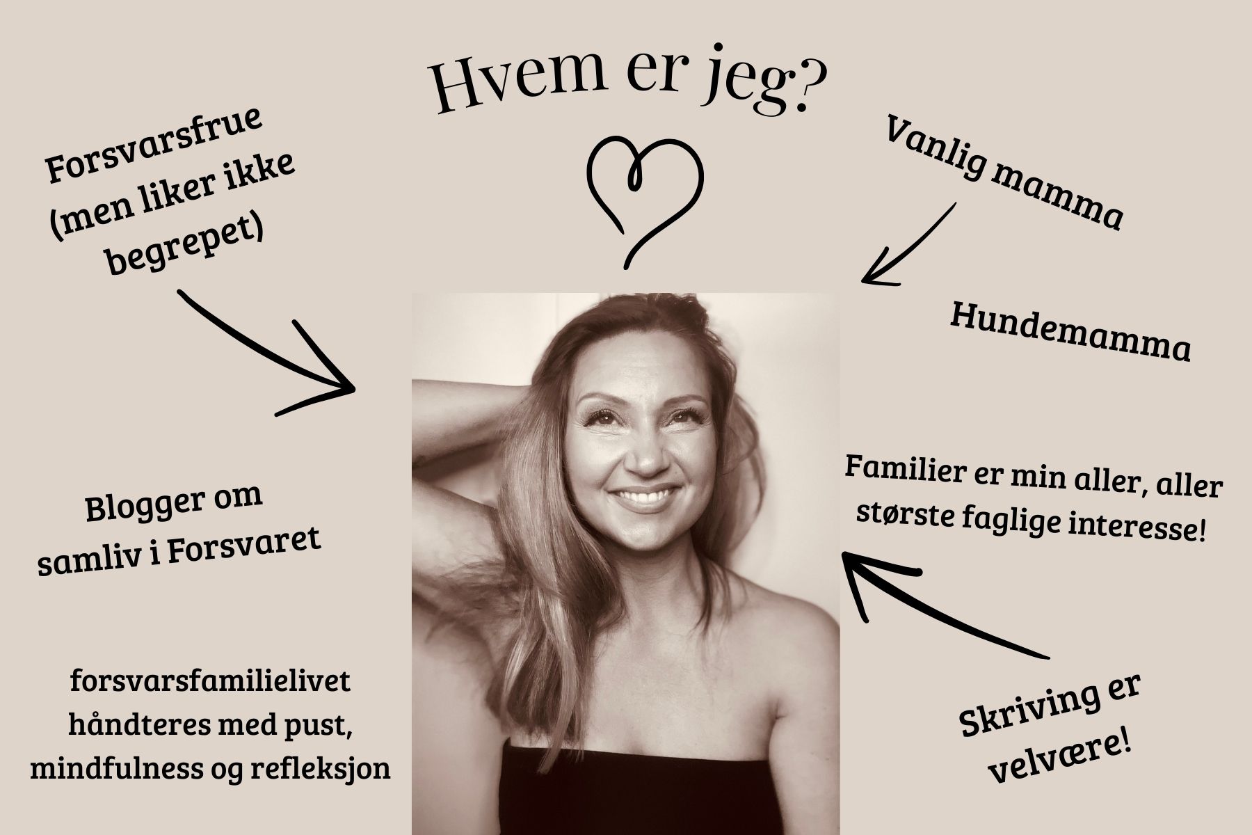 Jeg ønsker å by på meg selv her. Dele erfaringer og være personlig. Forhåpentligvis klarer jeg å gjøre dette gjenkjennbart for andre forsvarsfamilier. Jeg håper at personlige tekster om tilværelsen kan gi bedre innsikt til dem som søker det og kanskje være en støtte for dem som søker det.